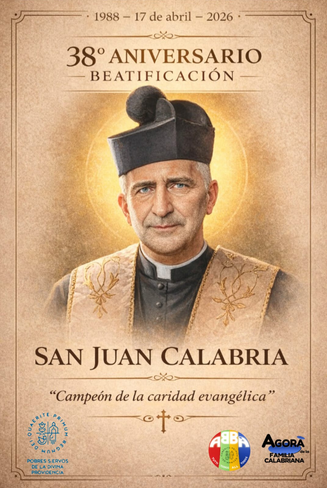 Hoy, 17 de abril, la Familia Calabriana se une en una profunda alegría y gratitud al conmemorar 38 años de un acto fundamental en nuestra historia: la beatificación de nuestro amado fundador, San Juan Calabria.